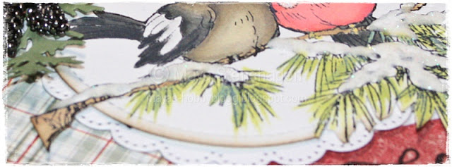 Pynt: Kort & Godt - Pyntebær rød. Tim Holtz - Adornments pinecone. Papirdesign - Perler. Finnabair - Snowflake paste