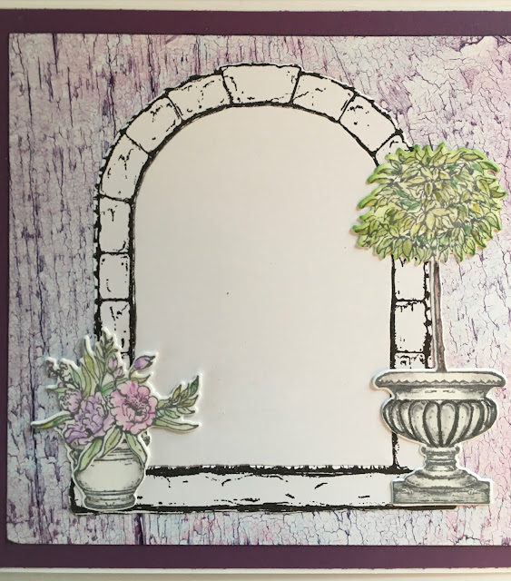 Blomstene har jeg laget ved å stemple med Archival violet på blomsterkartong.